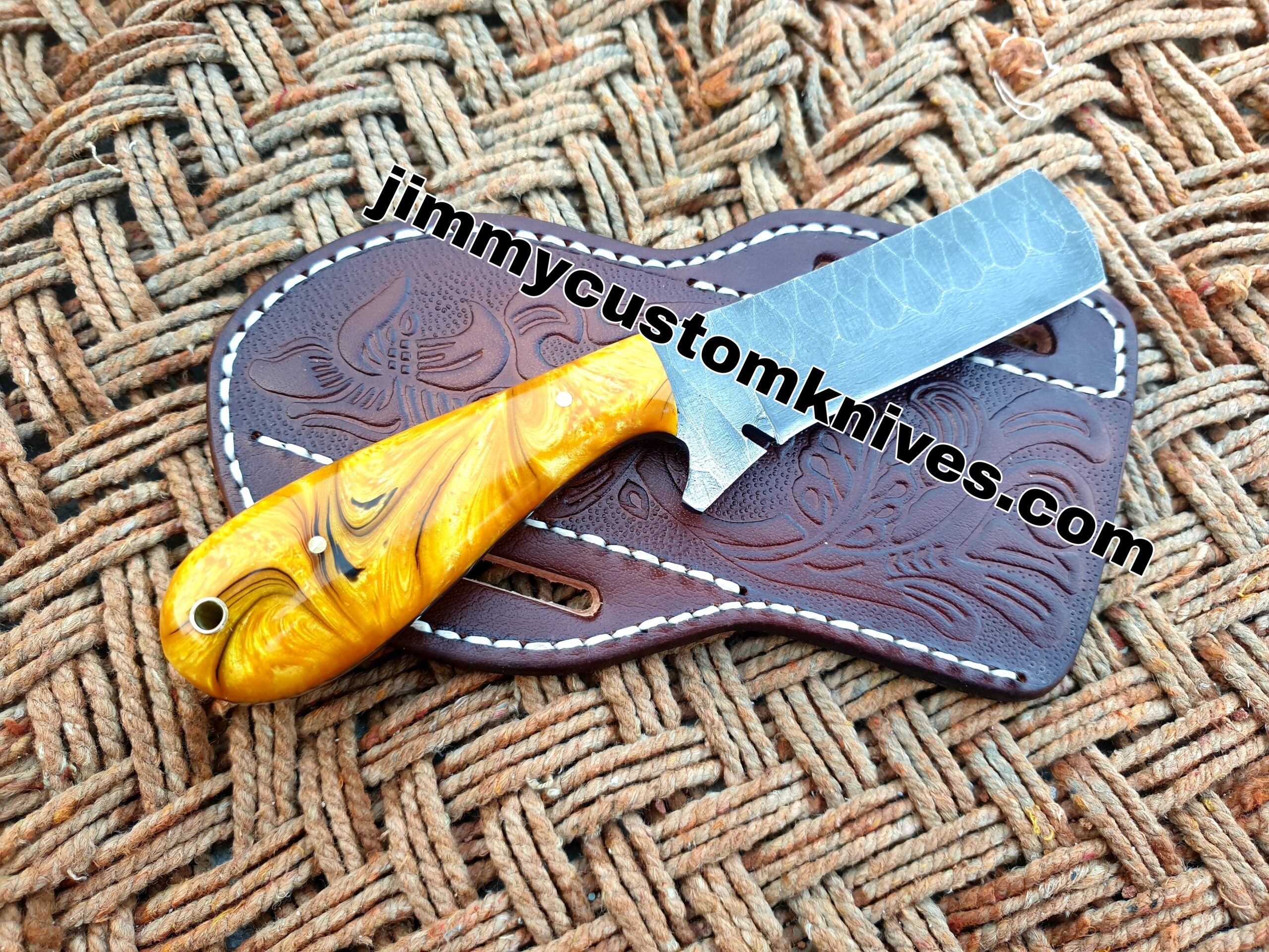 custom hand made Damascus steel bull cutter knife.