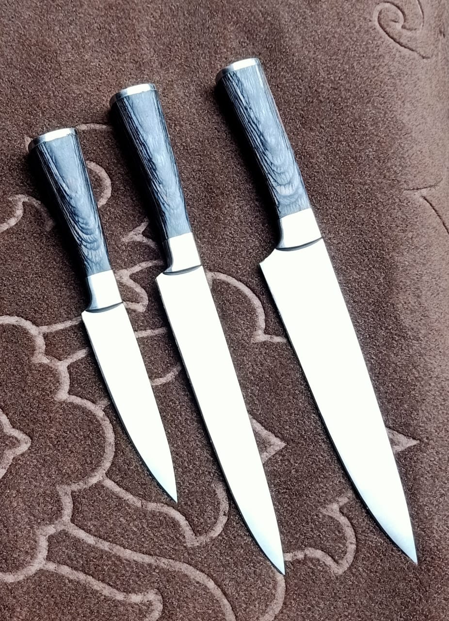 Chef Set of 3 Pcs J2 Steel and very Sharp Edge with leather Sheath..