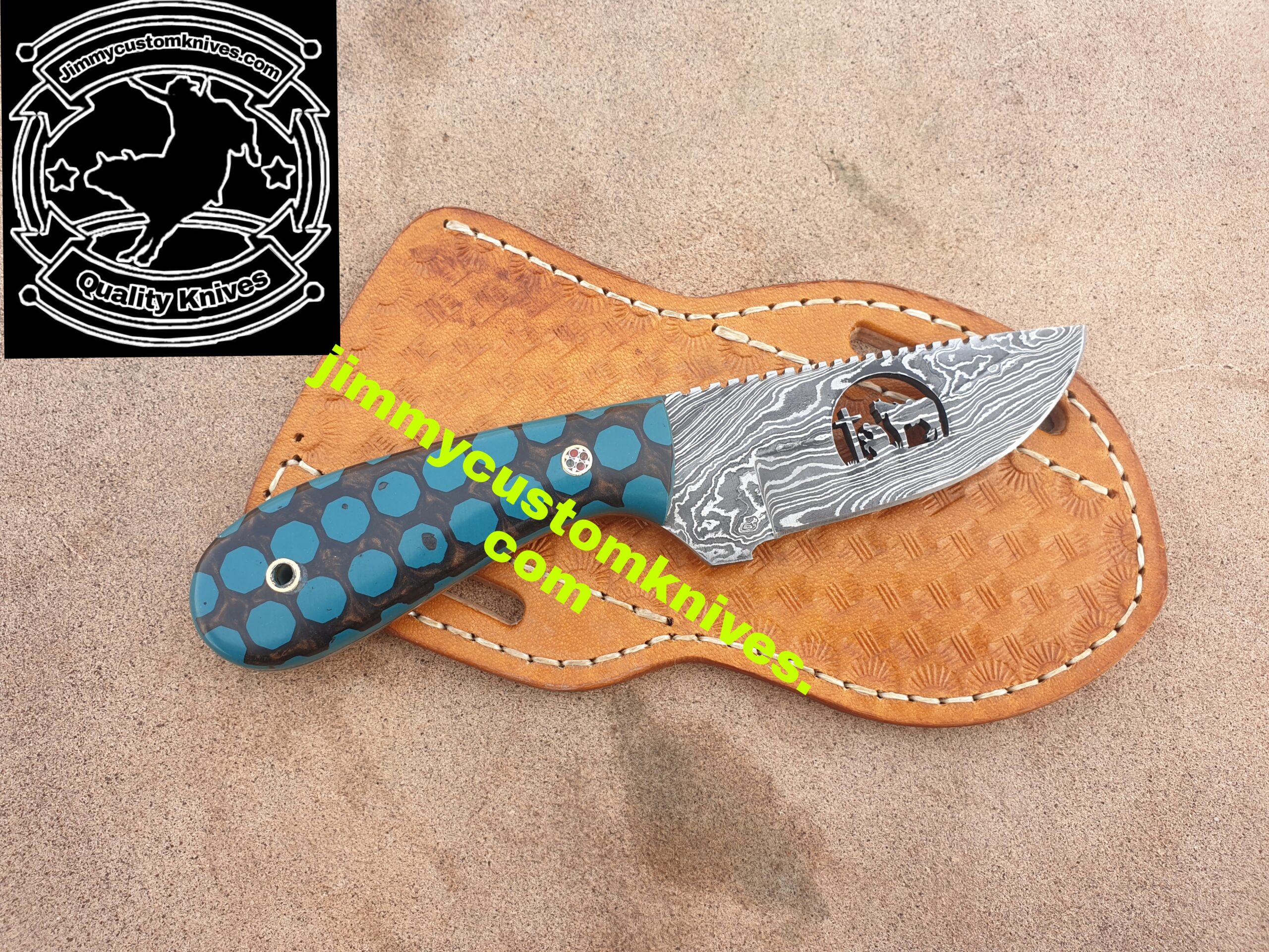 custom hand made Damascus steel cowboy and bull cutter knife.