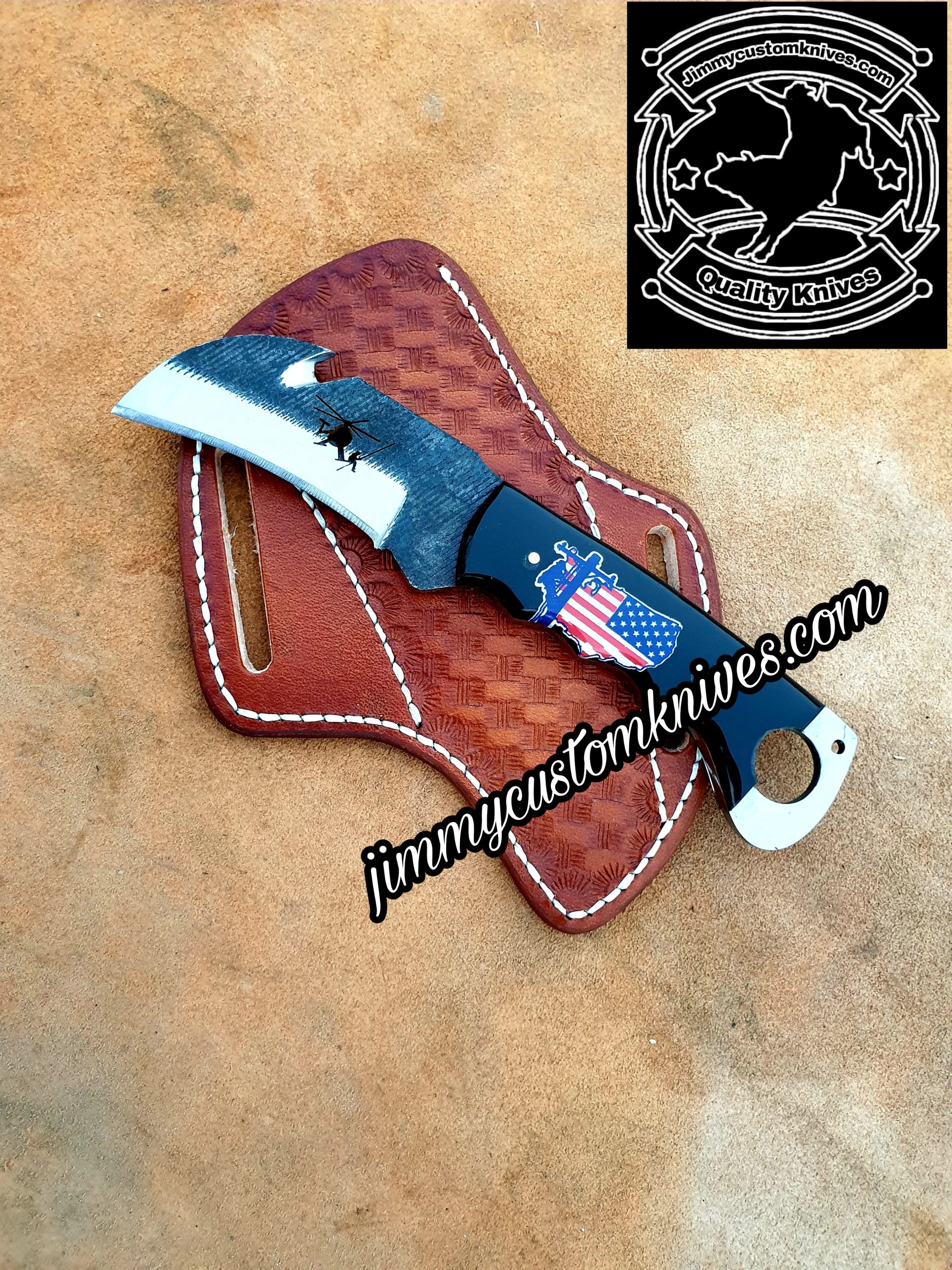 custom hand made carbon steel hawk bill knife.