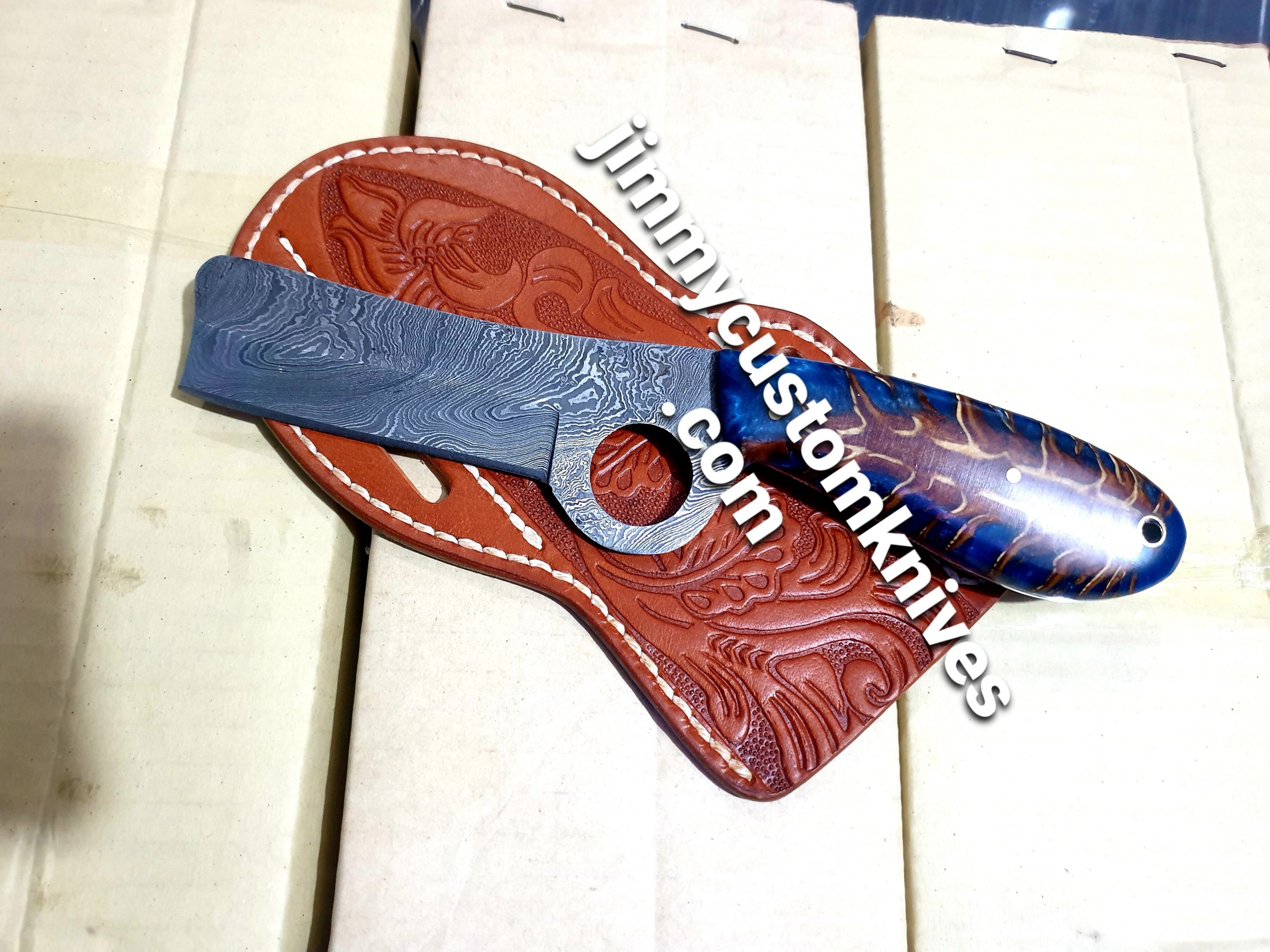 Be the first to review “Custom hand made Damascus steel bull cutter knife”