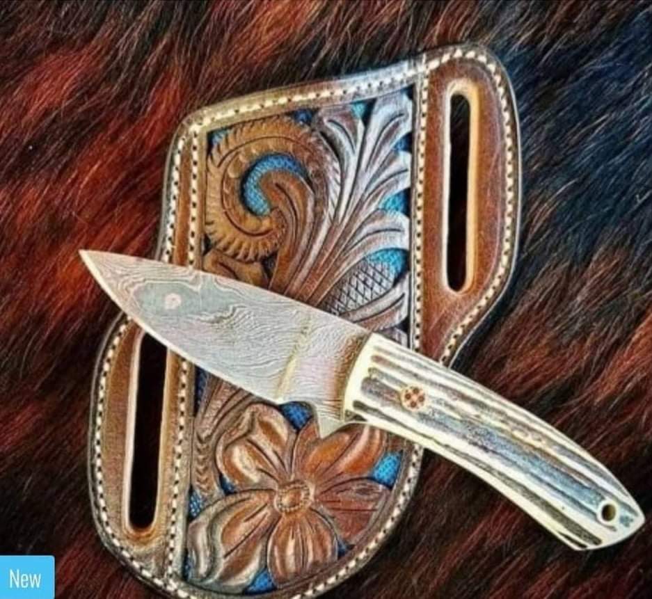 Hi guys for sale custom hand made Damascus steel cowboy knife.