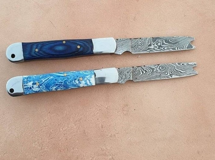 One folding knife price is $115 with leather sheath