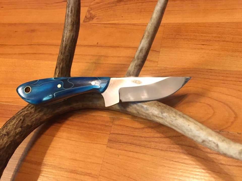 Custom Handmade j2 steel Skinner knife.Handle made of Resin.overall length is 8"inches.also comes with cow Hide leather sheath.sharp edges and still long time...