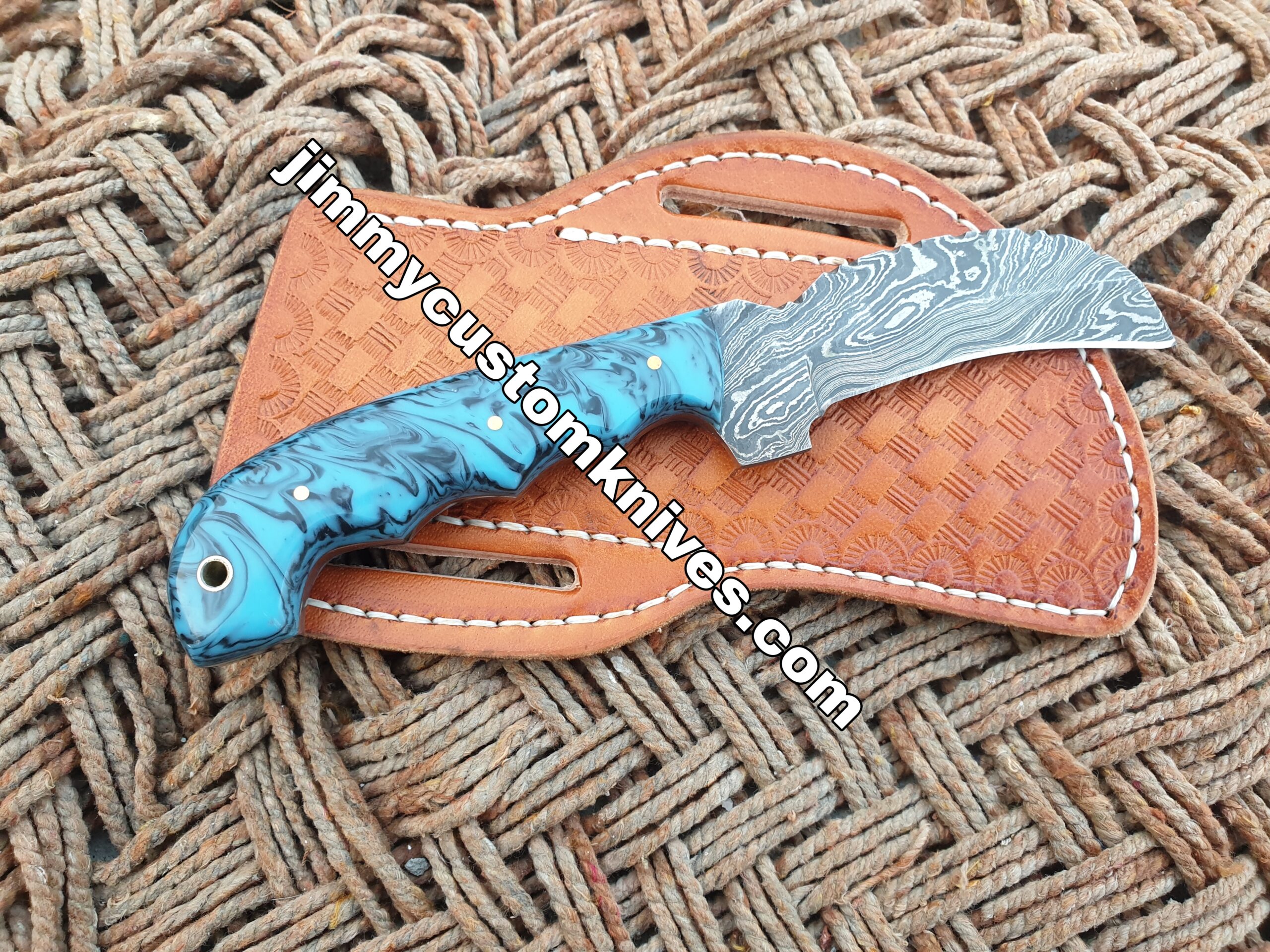 hand made Damascus steel lineman cutout knife.