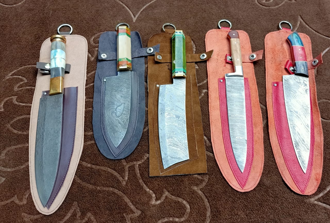 Lot of 5 pcs Kitchen Knives with Leather sheath